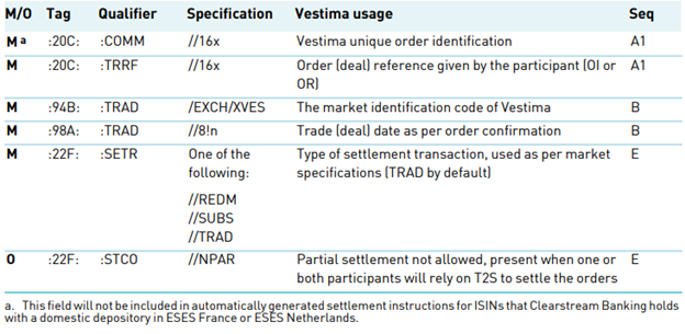 Participants (the OI and the OR) can specify that settlement instructions are to be generated automatically by Vestima for an order. Vestima can generate both securities and cash instructions. If the settlement instructions are generated automatically by Clearstream Fund Centre (“locked-in settlement”), the risk of error associated with settlement is avoided.