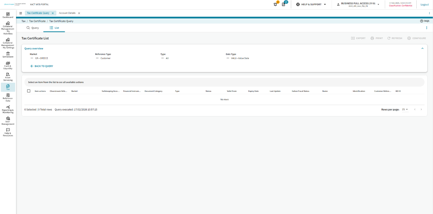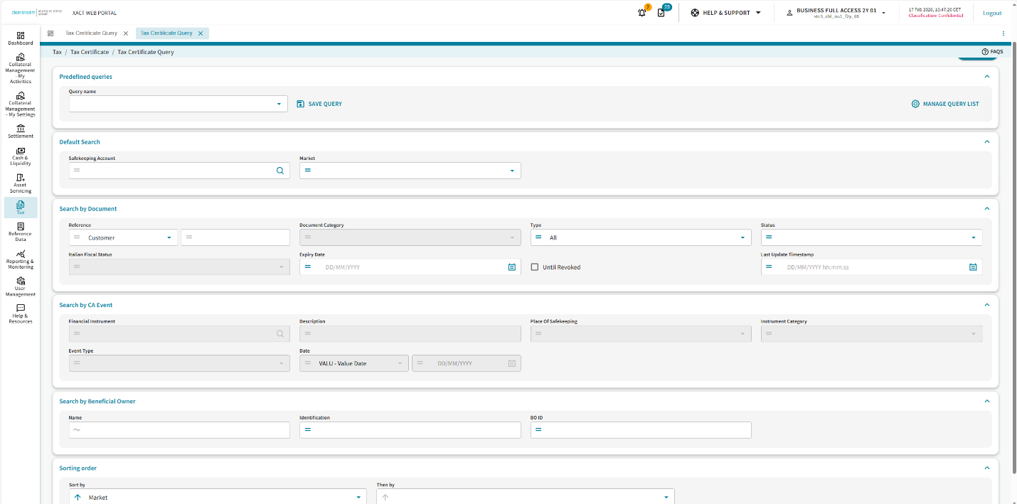 In this upcoming release, LuxCSD will introduce a new user interface and experience for the Tax Certificate Query section in Xact Web Portal. These changes will improve the experience of users accessing their Tax queries.